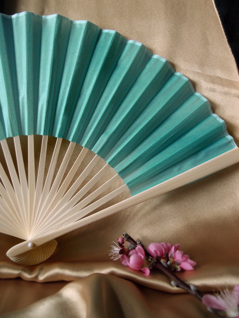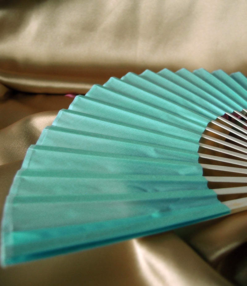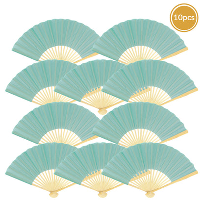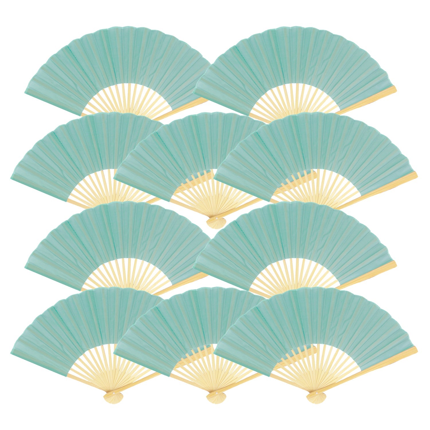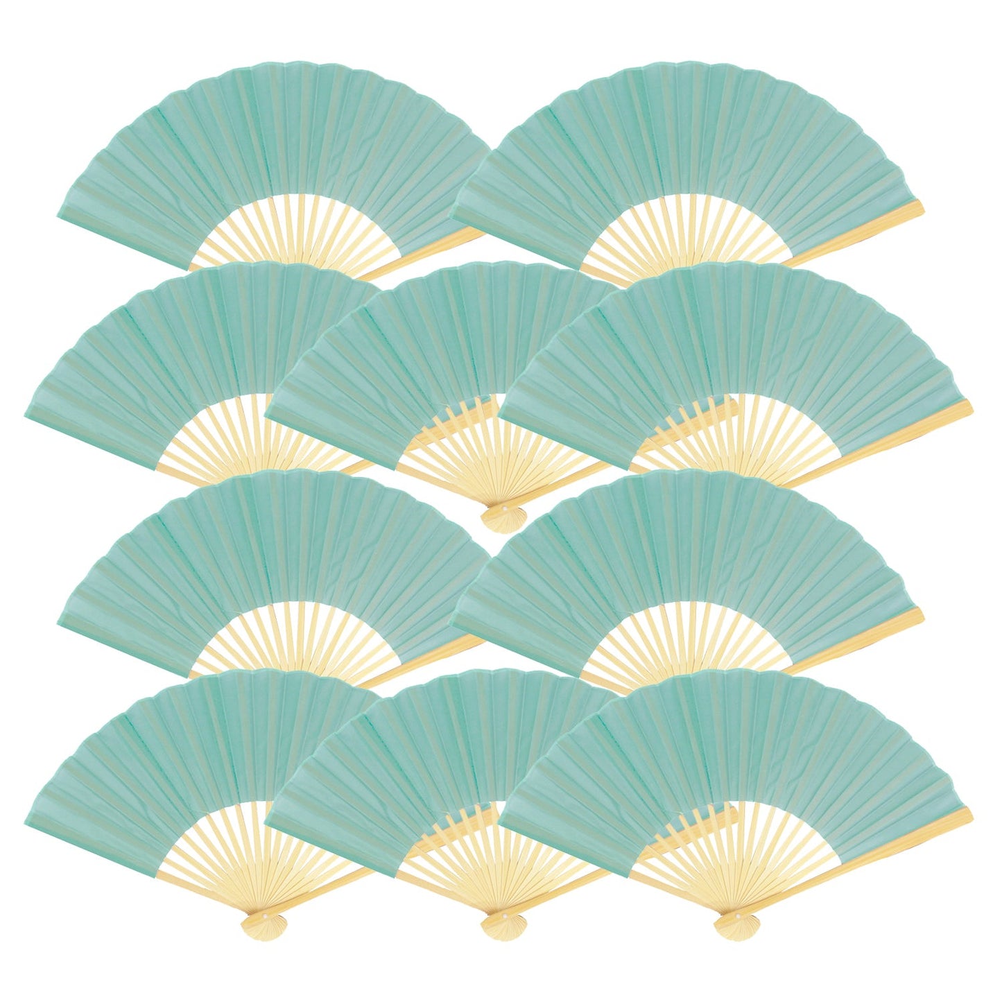 9" Water Blue Silk Hand Fans for Weddings (10 Pack)