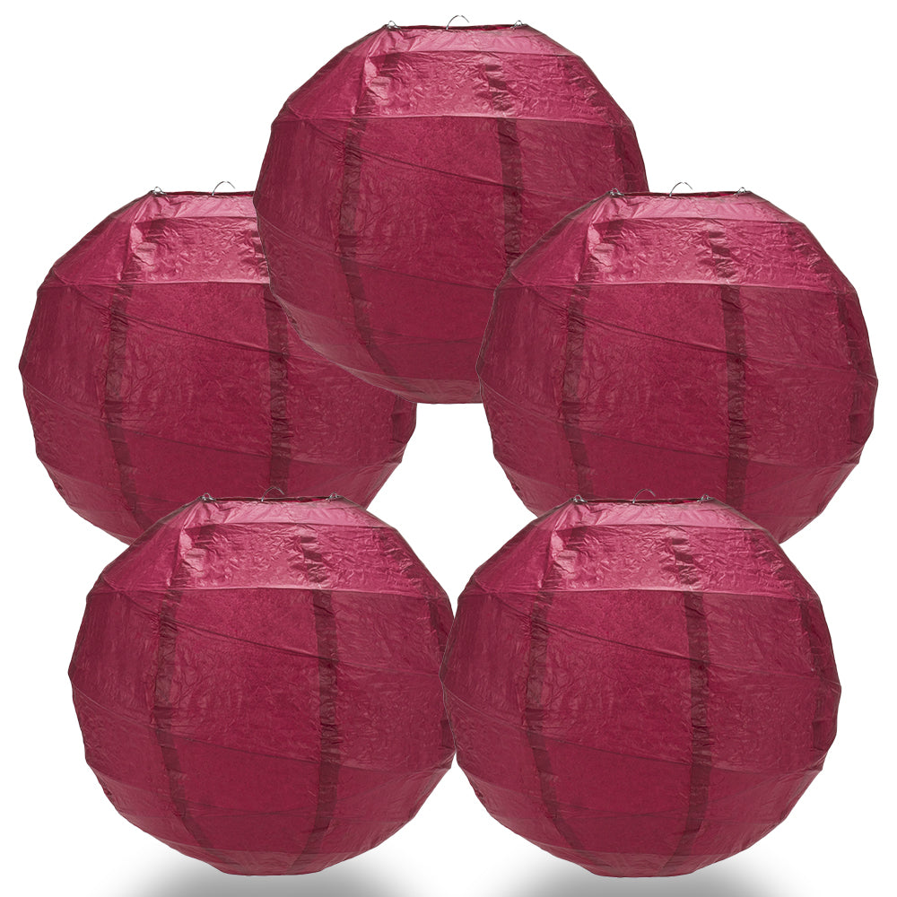 5 PACK | 12" Velvet Red Crisscross Ribbing, Hanging Paper Lanterns