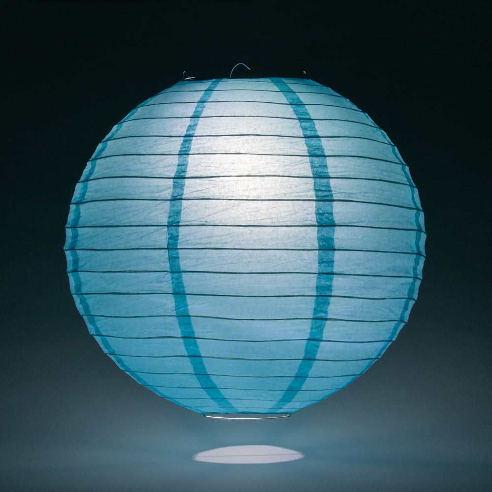 16" Baby Blue Round Paper Lantern, Even Ribbing, Hanging Decoration - PaperLanternStore.com - Paper Lanterns, Decor, Party Lights & More