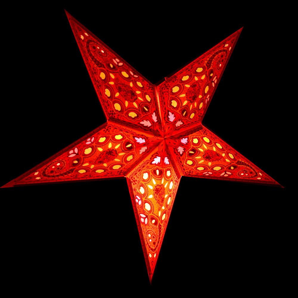 24" Red Tulip Cut Paper Star Lantern, Chinese Hanging Wedding & Party Decoration
