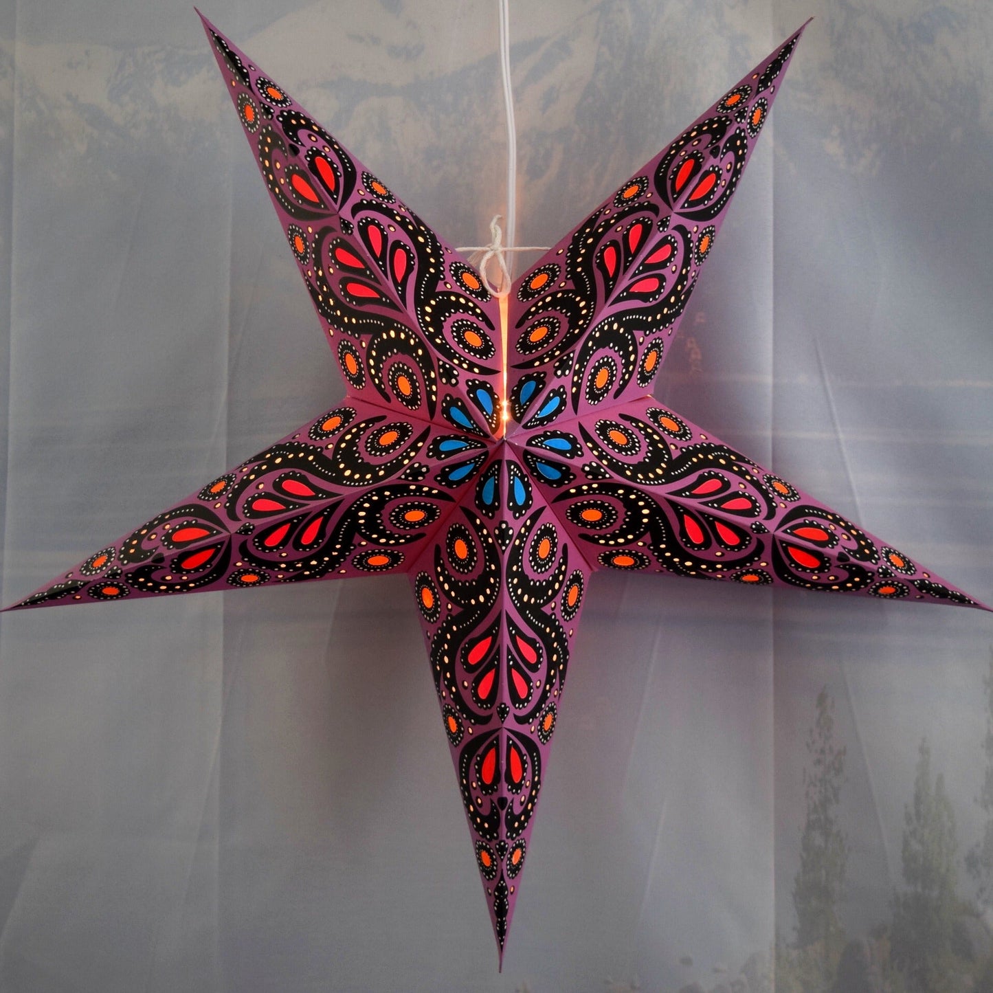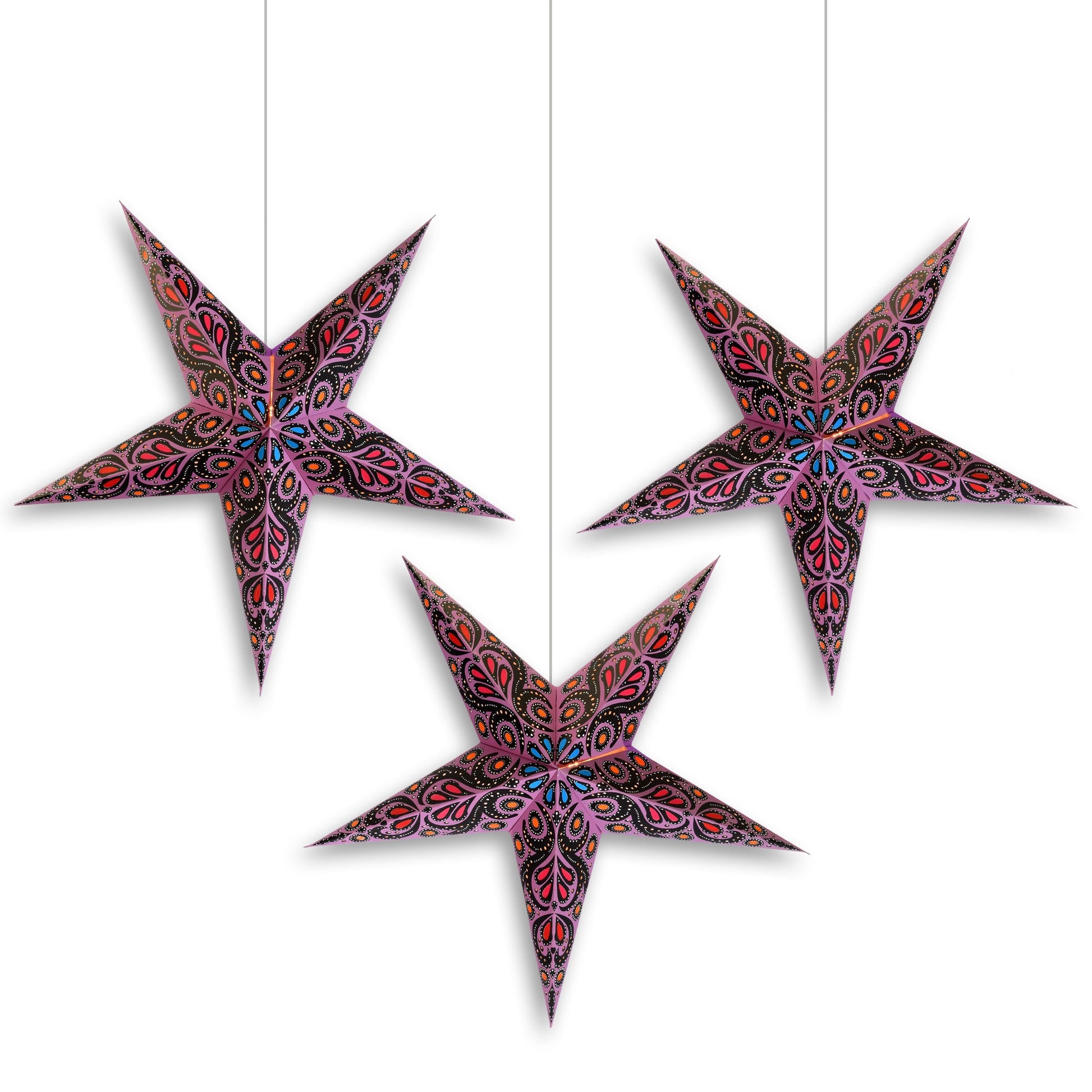 Introducing our hand-crafted hanging Paper Star Lantern KIT, perfect for adding a unique and decorative touch to your home or event. Each kit includes a beautifully designed star lantern, a triple-socket pendant light cord, and 3x LED light bulbs, making it a complete lighting solution. These high-quality lanterns are crafted from thick paper and feature intricate, punched star designs. Whether for home décor or as a stunning centerpiece for weddings and parties, our star lanterns create a magical ambiance in any setting.