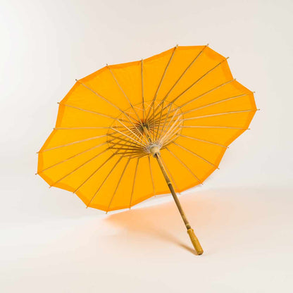 32" Orange Paper Parasol Umbrella, Scallop Blossom Shaped with Elegant Handle