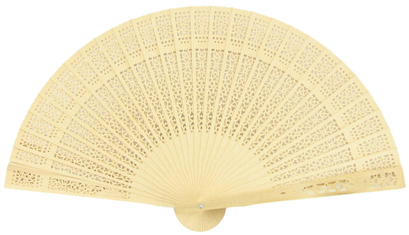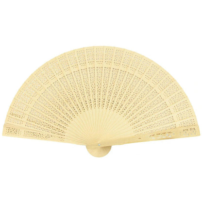 8" Natural Beige / Ivory Tan Sandalwood Folding Hand Fan w/ Organza Bag for Weddings (10 PACK) - PaperLanternStore.com - Paper Lanterns, Decor, Party Lights & More