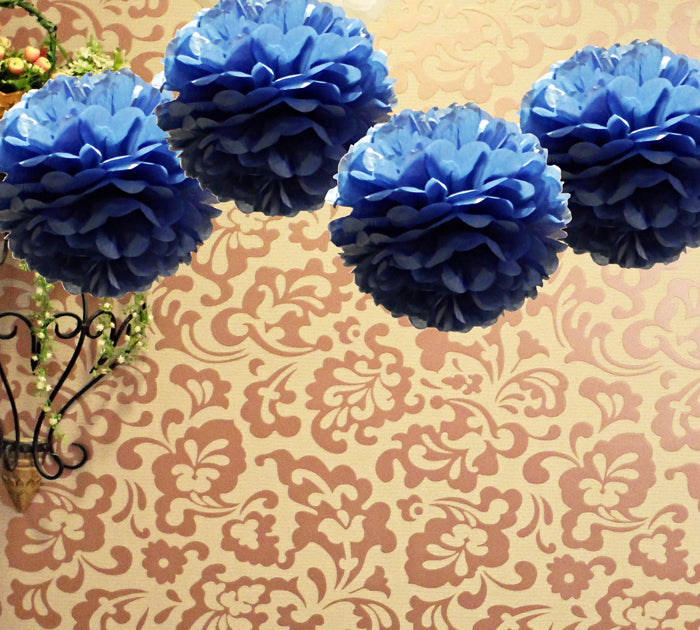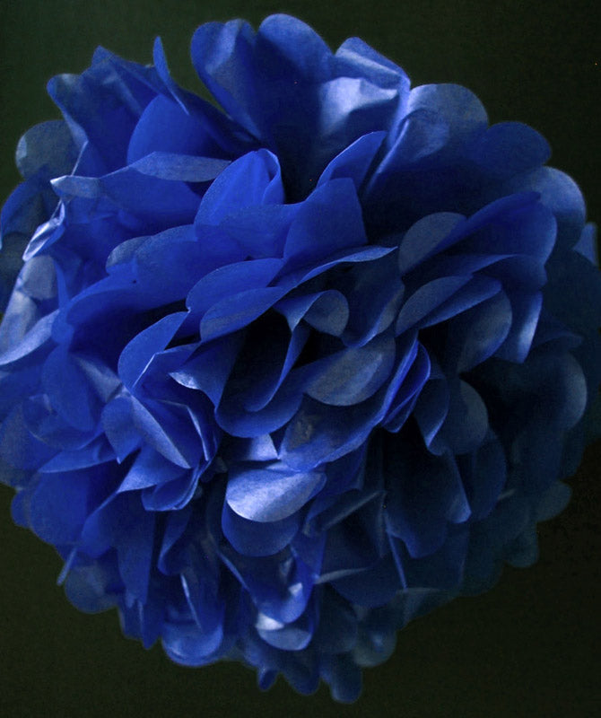 Color: Navy Blue. Pre-Folded. Dimensions: 8" Tissue Paper Flower Pom Poms. Quantity: 4 Flower Pom Poms. Please Note: To fluff up Pom Pom's, simply accordion fold the tissue paper sheets. Then secure the folded tissue paper in the center with the twist ties provided and finally fluff up the pom pom's and hang anywhere.