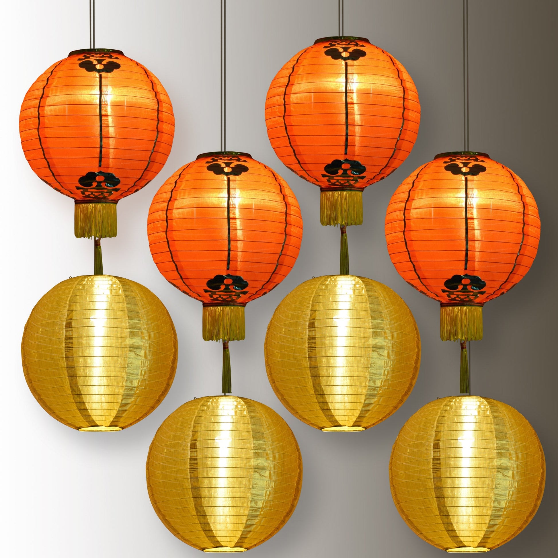 8 PACK | Chinese Lunar New Year Prosperity Nylon Lanterns, Red Gold Hanging Combo Set