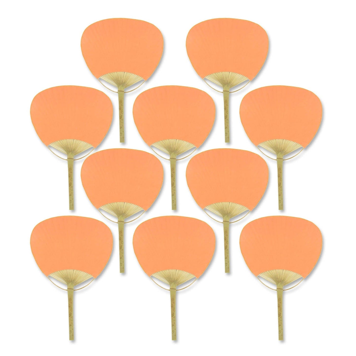 9" Orange Paddle Paper Hand Fans for Weddings (10 Pack)
