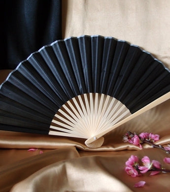 BULK PACK (50) 9" Black Silk Hand Fans for Weddings