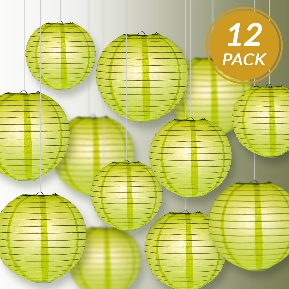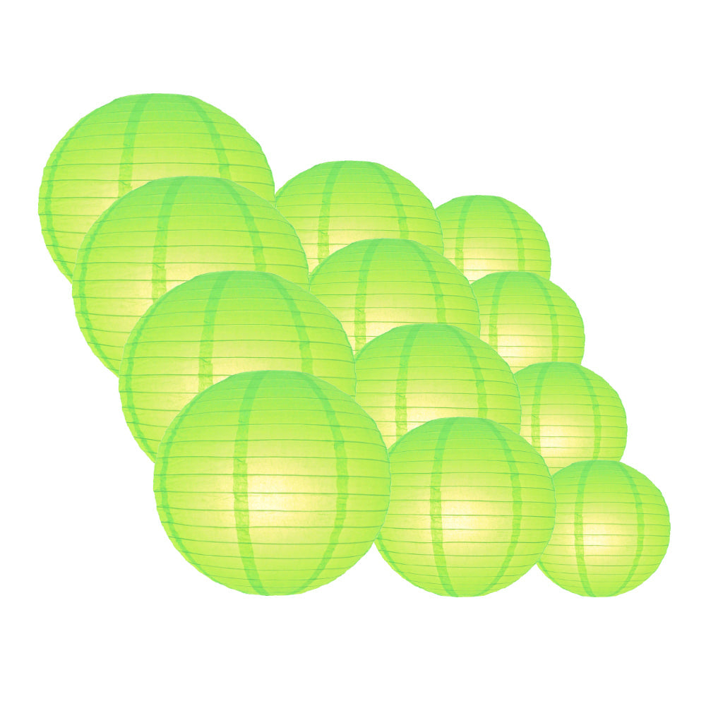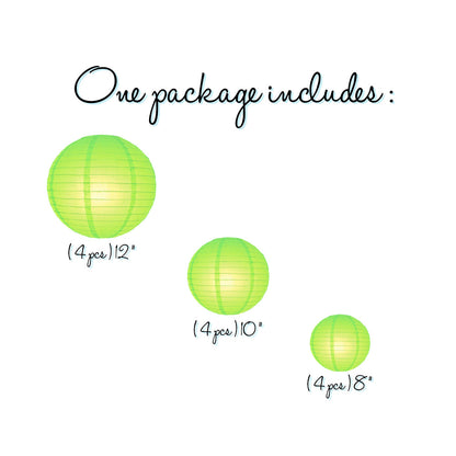 12-PC Light Lime Green Paper Lantern Chinese Hanging Wedding & Party Assorted Decoration Set, 12/10/8-Inch