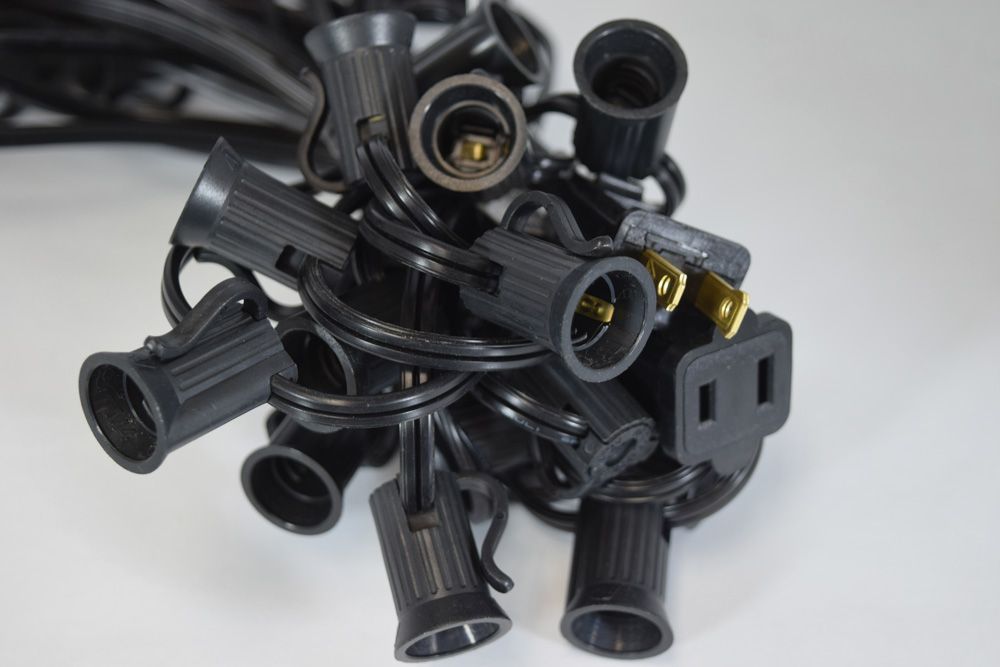 Lantern Color: Various. Lantern Diameter: 12" (See Lantern Size Comparison) Lantern Style: Even Ribbing. Lantern Material: Paper String Light:1x 10 Bulb, 31 Foot Long, Black Cord String Light Included. Spacing Between Sockets: 36". On/Off Switch?: No. Drop Distance: None. Cord Color: Black. Suitable Environment: Indoor and Outdoor Use. Included Bulbs: G40 Globe Clear Bulbs. Bulb Wattage: 10x 5Watts (250W Max). Supported Bulb Types: Incandescent. Power Connection: Plug-In. Expandable End-To-End?: Yes. End-To-End Connection Limit: Up To 3 Cords Total (when used with included 5W Bulbs). Lantern Clip?: Yes. Wiring Type: Parallel - Other bulbs stay lit if one goes out. Outdoor Use?: Cord is IP44 Outdoor rated. Lanterns suitable for Dry Outdoor Use. UL Listed?: UL Listed. Voltage: 120V. Spare Fuse?: Yes, 1x Included. Wire Gauge: 18 Gauge.
