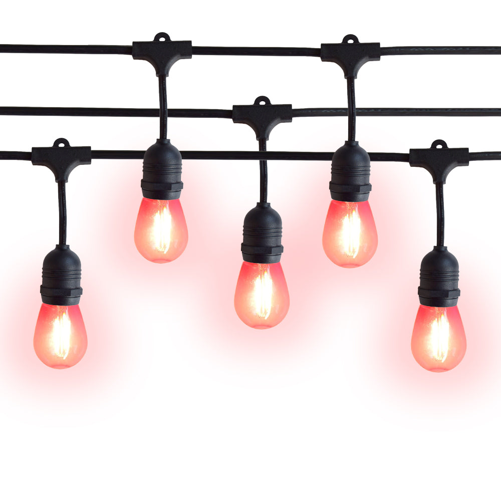 Use this commercial-grade light string inside or outside for temporary or permanent installation without a care. This rain-resistant lighting cord boasts parallel wiring, which means that even if one bulb goes out, the others will remain illuminated. If you want to cover even more ground, you can connect as many as 25x of these light strings end to end when you use our 2-watt Bulbs.