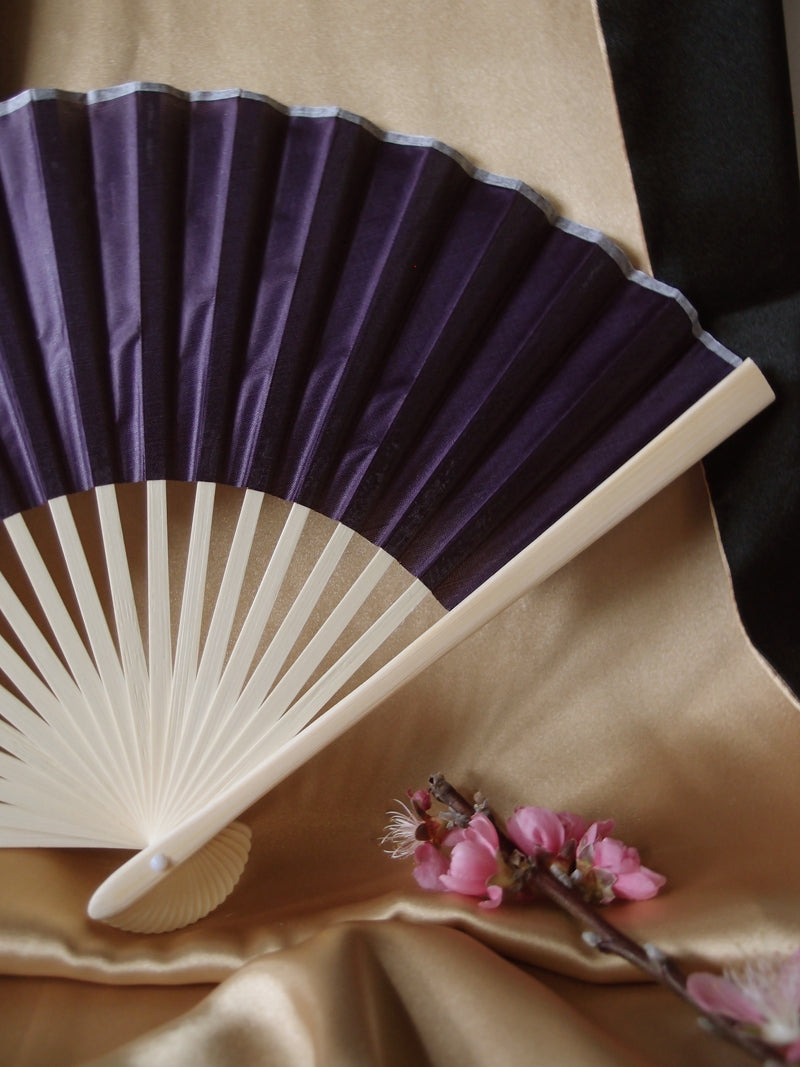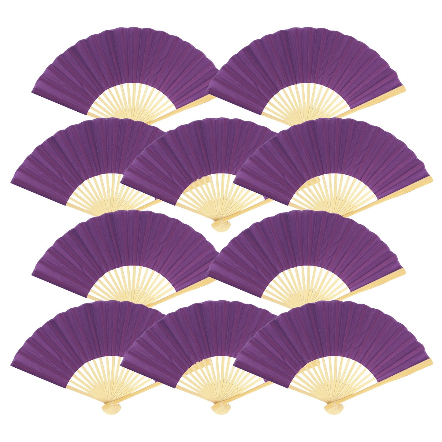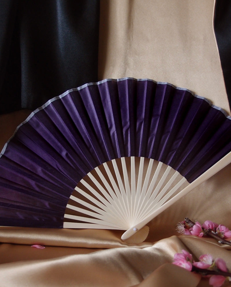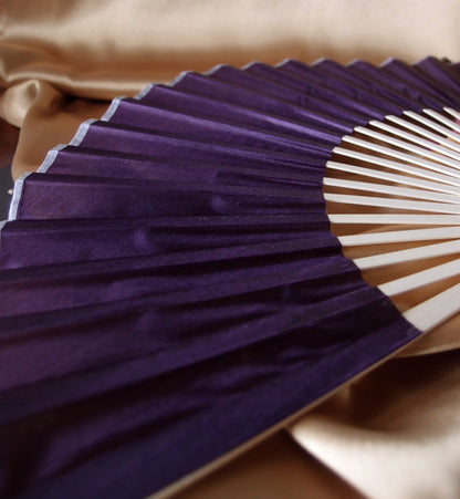 9" Dark Purple Silk Hand Fans for Weddings (10 Pack)