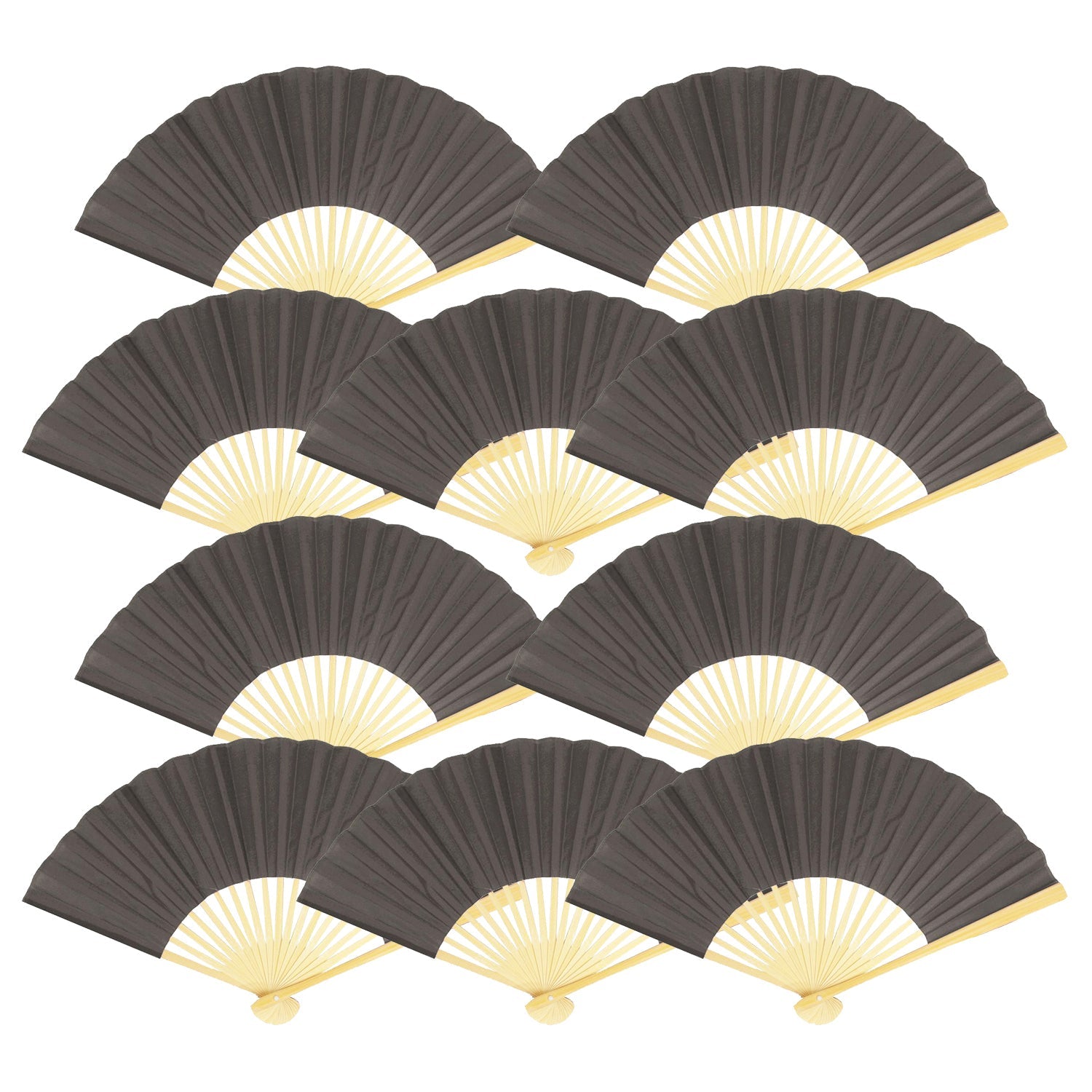 9" Gray / Grey Silk Hand Fans for Weddings (10 Pack)
