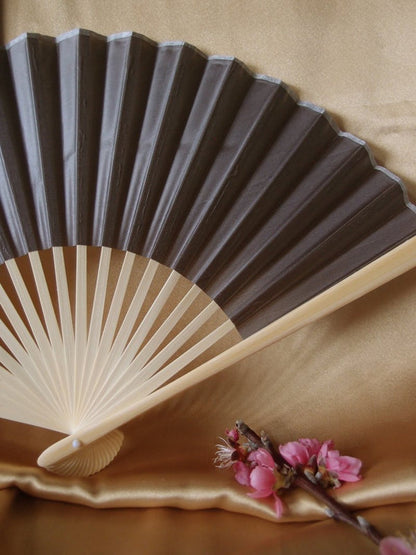 9" Gray / Grey Silk Hand Fans for Weddings (10 Pack)9SBHF-DV