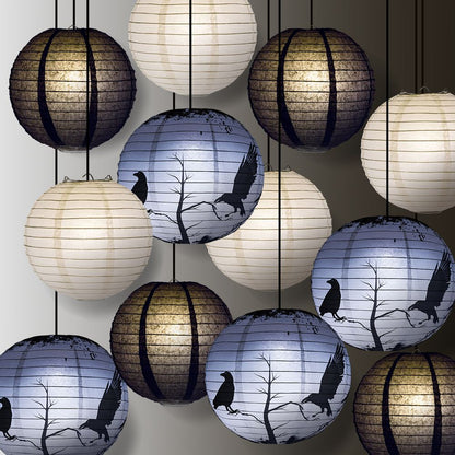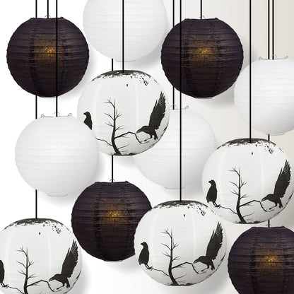 Halloween 12-Piece Black Crows Paper Lantern Party Pack Set, Assorted Hanging Decoration
