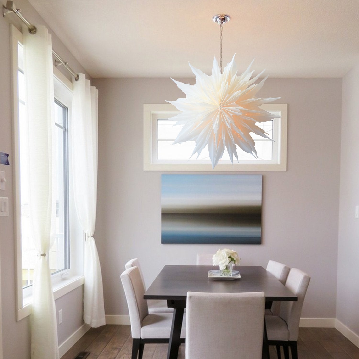 Need lighting? We have unique E12 Socket Single and Multi-Lamp Cord Kits that can be used to hang and beautifully illuminate this Paper Star Lantern. |