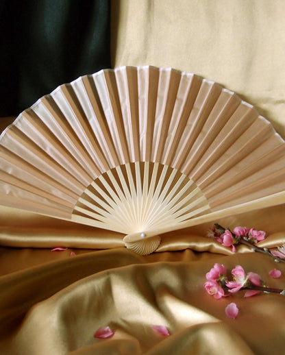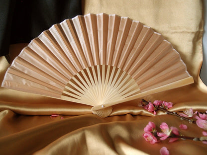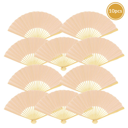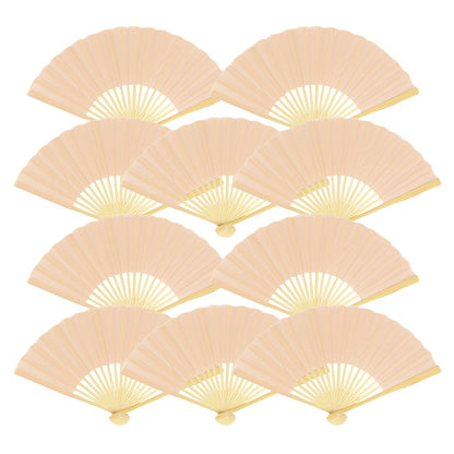 9" Nude Silk Hand Fans for Weddings (10 Pack)