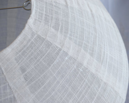 Elevate your interior design with the timeless charm of our Handcrafted Oblong Round Linen Fabric Lantern. Designed with a natural white-beige tone and inspired by iconic mid-century forms, this (16"W x 16"H) pendant lampshade blends organic elegance with modern minimalism. Whether enhancing your home, event, or boutique, it’s the perfect way to create a warm, inviting ambiance with artisan flair.