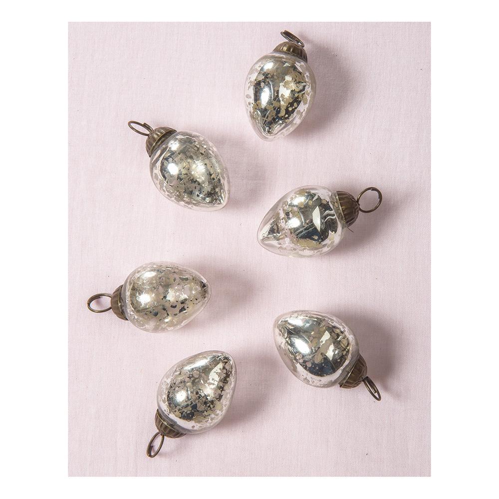 6 Pack | Mini Mercury Glass Ornaments (Raine Design, 1.75-inch, Silver) - Vintage-Style Decorations