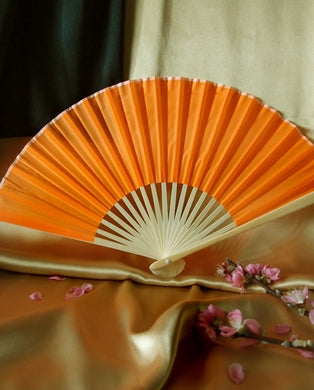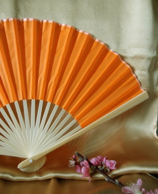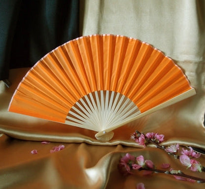 BULK PACK (50) 9" Orange Silk Hand Fans for Weddings