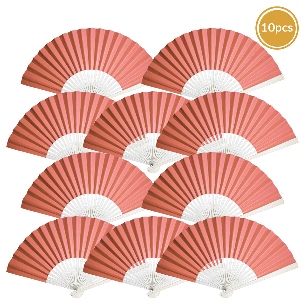 9" Roseate / Pink Coral Paper Hand Fans for Weddings, Premium Paper Stock (10 Pack)