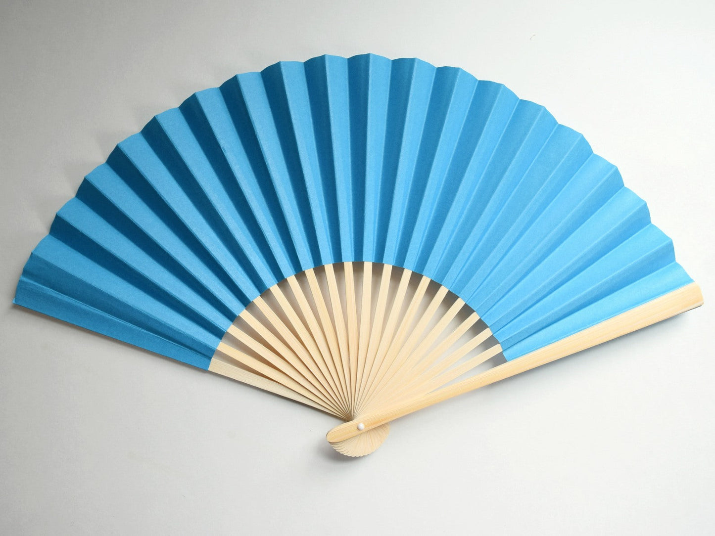 9" Turquoise Paper Hand Fans for Weddings, Premium Paper Stock (10 Pack)