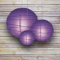 8/12/16" Purple Round Paper Lanterns, Irregular Ribbing (3-Pack Cluster)