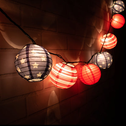 Color: 4th of July, Red, White and Blue Diameter: 4" Style: Even Ribbing Material: Paper Lighting: String Light Not Included - See Compatible String Lights. Please Note: These 4-inch lanterns are not compatible with G40, G50, E12, E17, or E26 Light Bulbs.