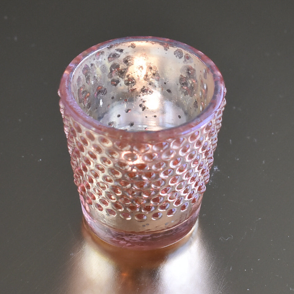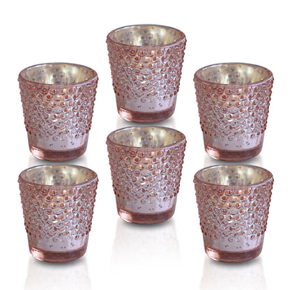 6 Pack | Vintage Hobnail Mercury Glass Candle Holders (2.25-Inches, Candace Design, Rose Gold Pink) - For Use with Tea Lights - For Home Decor, Parties and Wedding Decorations