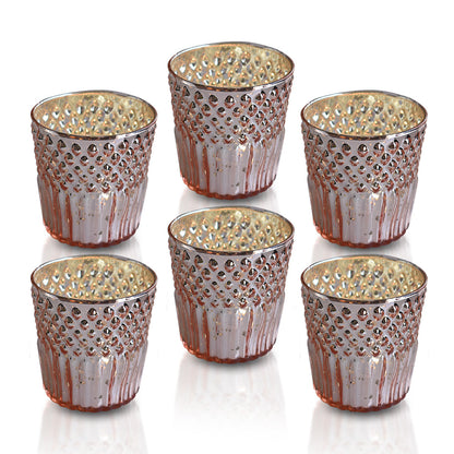 6 Pack | Mercury Glass Tealight Candle Holders (2.75-Inches, Ophelia Design, Rose Gold Pink) - For Use with Tea Lights - For Home Decor, Parties and Wedding Decorations
