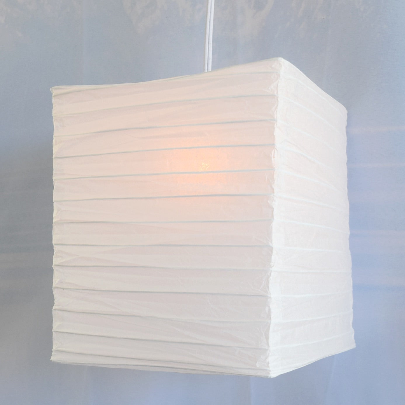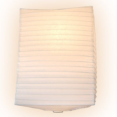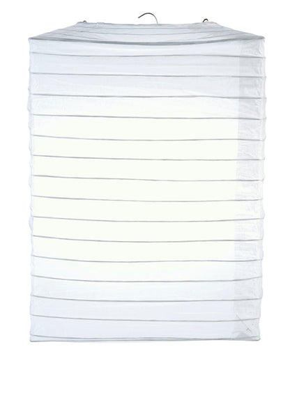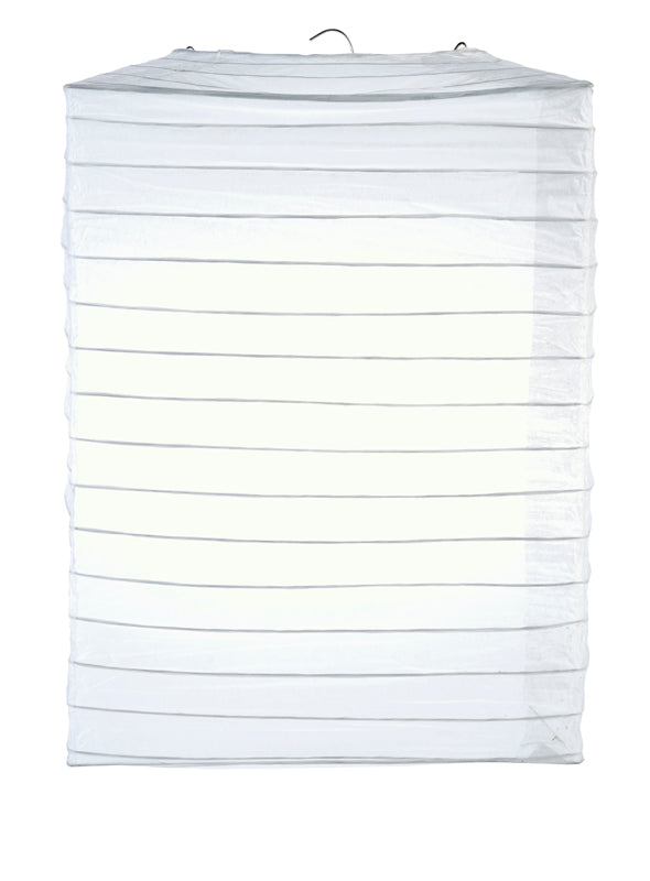White Paper Lanterns long box square paper lanterns. Lantern is held open with a wire expander. Lantern is beautiful with wire ribbings. Dimensions: 8" x 8" x 10"L (All lanterns sold without cord, cord must be purchased separately)