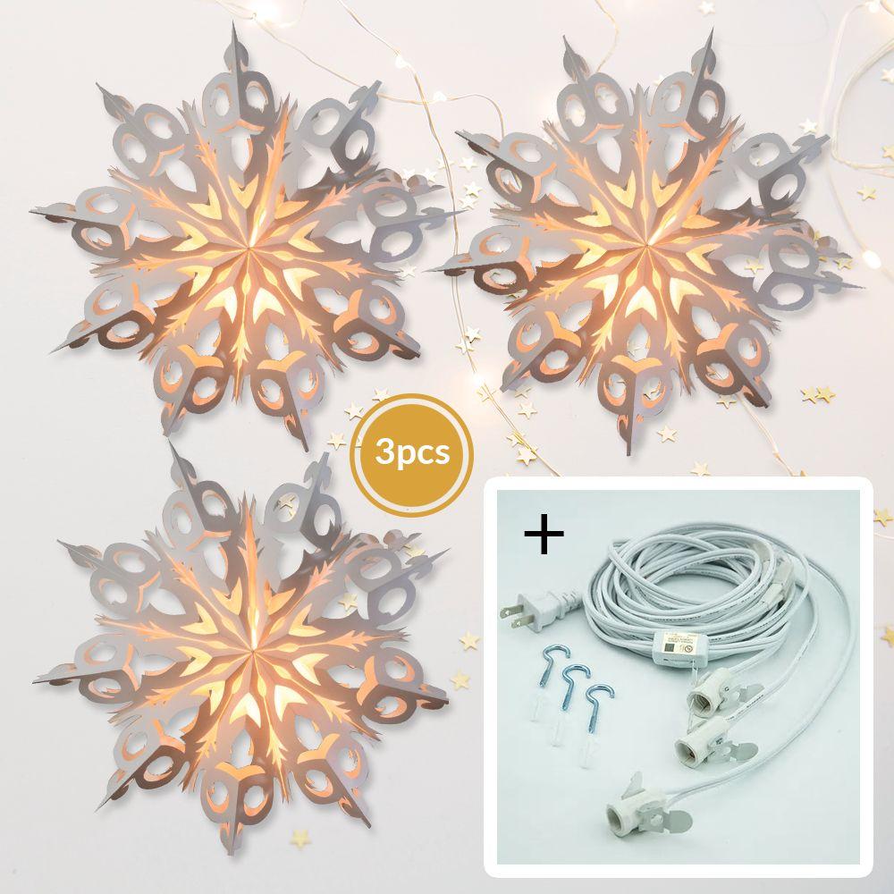 AsianImportStore's new line of Holiday Snowflake Paper Lantern Stars are perfect for the Christmas Holiday as a home decor accessory or as an outdoor Winter Wedding decoration. These star lantern lamps are high-quality - made from very thick paper and punched with a special snowflake design. Available in many patterns, our unique star lanterns can be seen hung on the sets of many Hollywood movies and TV shows. Our stars come direct from India and will make a beautiful display or decoration in any room of your home or event space. Add a touch of fun when paired with one of our lamp cord kits to create wonderful ambiance lighting.